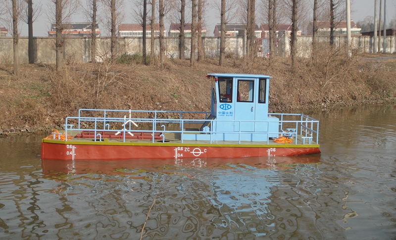 本船為垃圾半自動打撈船,船頭兩邊尖,中間開口,中間為垃圾收集艙,行駛時垃圾向中間倉內(nèi)進,主要用于打撈收集河面普通漂浮垃圾,適合城區(qū)河道、小型水庫,該船收集范圍廣,既能清掃體積較大、長形的漂浮垃圾(如樹枝、塑料瓶等),又能清掃體積較小的,成片的漂浮垃圾(如綠萍、塑料袋、樹葉等)